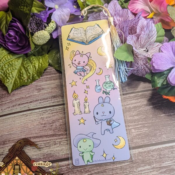 Our bookmarks are printed on high-quality glossy cardstock, using eco-friendly ink. The card stock has some friction to it, ensuring that it will stay put in even the smoothest of pages! Much like our stickers, all our bookmarks are made in-house to a high standard of quality.