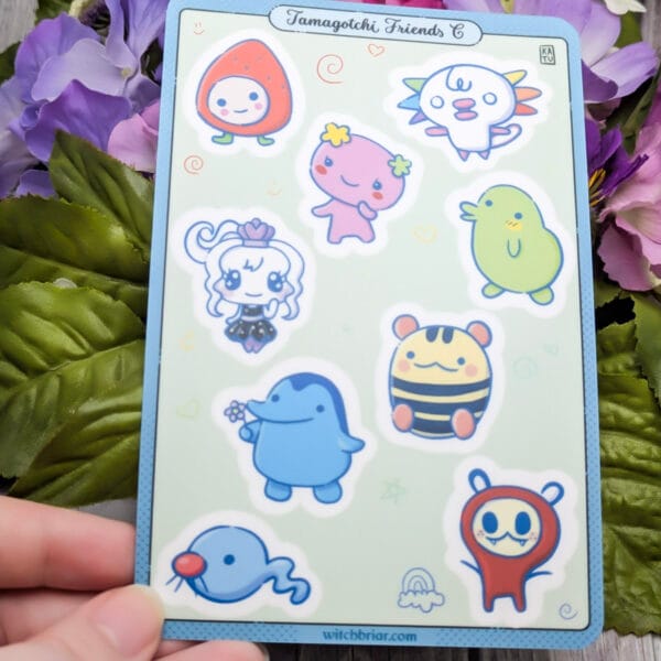 Tama Friends A: https://witchbriarcottage.etsy.com/listing/1813554355/tama-friends-a-sticker-sheet-4×6